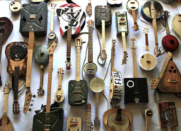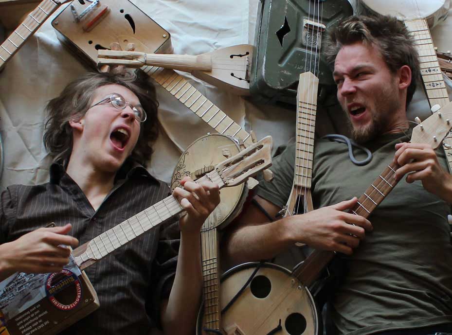 - Kreative Workshops: Hier wird es ernst. Kreativität und Geschick sind gefragt, denn es geht darum, aus willkürlichen Materialresten spielbare Instrumente zu bauen. Dieses Format ist wesentlich anspruchsvoller und zeitintensiver, dafür entstehen super unterschiedliche, verrückte Instrumentkreationen.